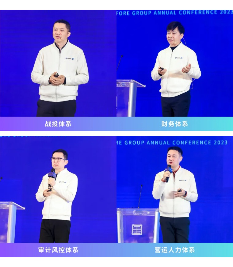 會上,集團戰(zhàn)投、財務、營運人力、審計風控四大職能體系分別作了年度工作報告及重要制度報告。
